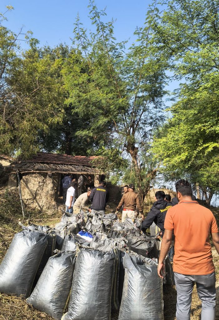 नीमच (सगीर पठान)। तस्करों द्वारा एक राज्य से दूसरे राज्य में अफीम, डोडाचूरा, स्मैक, नशीली दवा, एमडी ड्रग्स पहुंचाने के लिए नये-नये तरीके अपनाकर माल बड़े तस्करों को भेजा जाता है। लेकिन केंद्रीय नारकोटिक्स कंट्रोल ब्यूरो की मप्र यूनिट ने तस्करों के हर मंसूबे को विफल कर मादक पदार्थ जब्त कर कई कुख्यात तस्करों को सलाखों के पीछे पहुंचाया है। मंगलवार को तस्करों के नये रास्ते के साथ डोडाचूरा तस्करी का भंडाफोड़ किया। जिसे सुनकर हर कोई अचंभित रह गया है। मंदसौर जिले में शामगढ़ के चंबल नदी के डूब क्षेत्र में करेलिया टापू को तस्करों ने अपना अड्डा बनाया और यहां डोडाचूरा का भंडारण किया। जिसे तस्करी के लिए भेजने की तैयारी थी। सीबीएन के वरिष्ठ अधिकारियों को मुखबिर तंत्र ने गोपनीय सूचना दी। इस पर सीबीएन की दो टीम ने थल व जल के रास्ते एक घंटे का सफर करके टापू पर बनी झोपड़ी पर दबिश दी। जहां से 2083 किलो डोडाचूरा मिला।
