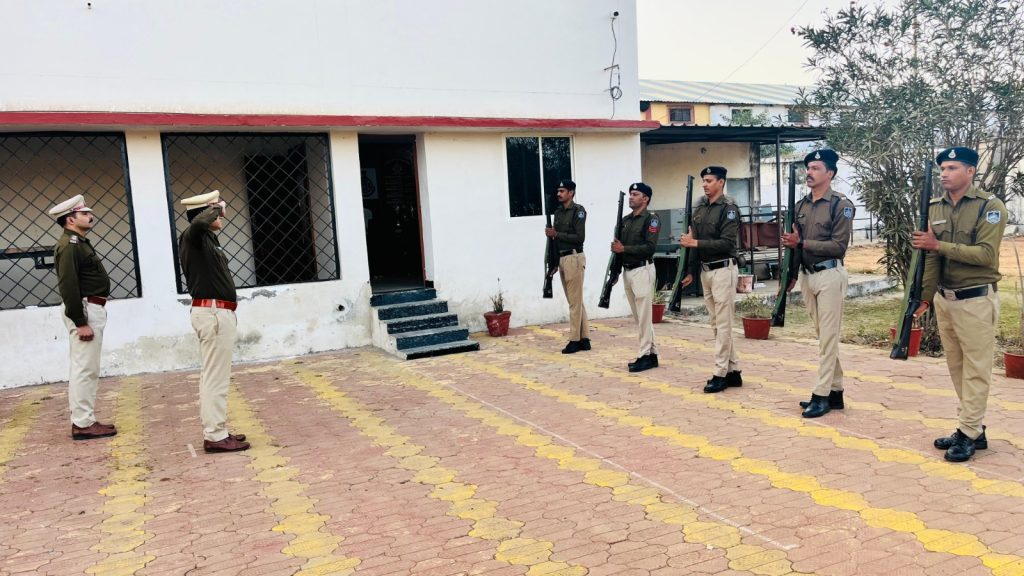 नीमच। पुलिस विभाग में अनुशासन बनाए रखने के लिए नियमित परेड का महत्वपूर्ण योगदान है। पुलिस फोर्स में परेड को अनुशासन का जड़ माना जाता है। परेड होने से पुलिस फोर्स में अनुशासन के साथ ही एक साथ टीम के रूप में कार्य करने की क्षमता बढ़ती है। इसी तरताम्य में मंगलवार को पुलिस लाइन कनावटी स्थित परेड़ ग्राउंड में जनरल परेड़ आयोजित की गई। रक्षित निरीक्षक विक्रम सिंह भदौरिया द्वारा सुबह 7 बजे परेड निरीक्षण के लिए परेड ग्राउंड में प्लाटूनों को खड़ा किया गया। तत्पश्चात सुबह 7ः15 बजे एएसपी नवल सिंह सिसोदिया के आगमन पश्चात परेड कमांडर रक्षित निरीक्षक विक्रम सिंह भदौरिया ने एएसपी को परेड की सलामी दी।