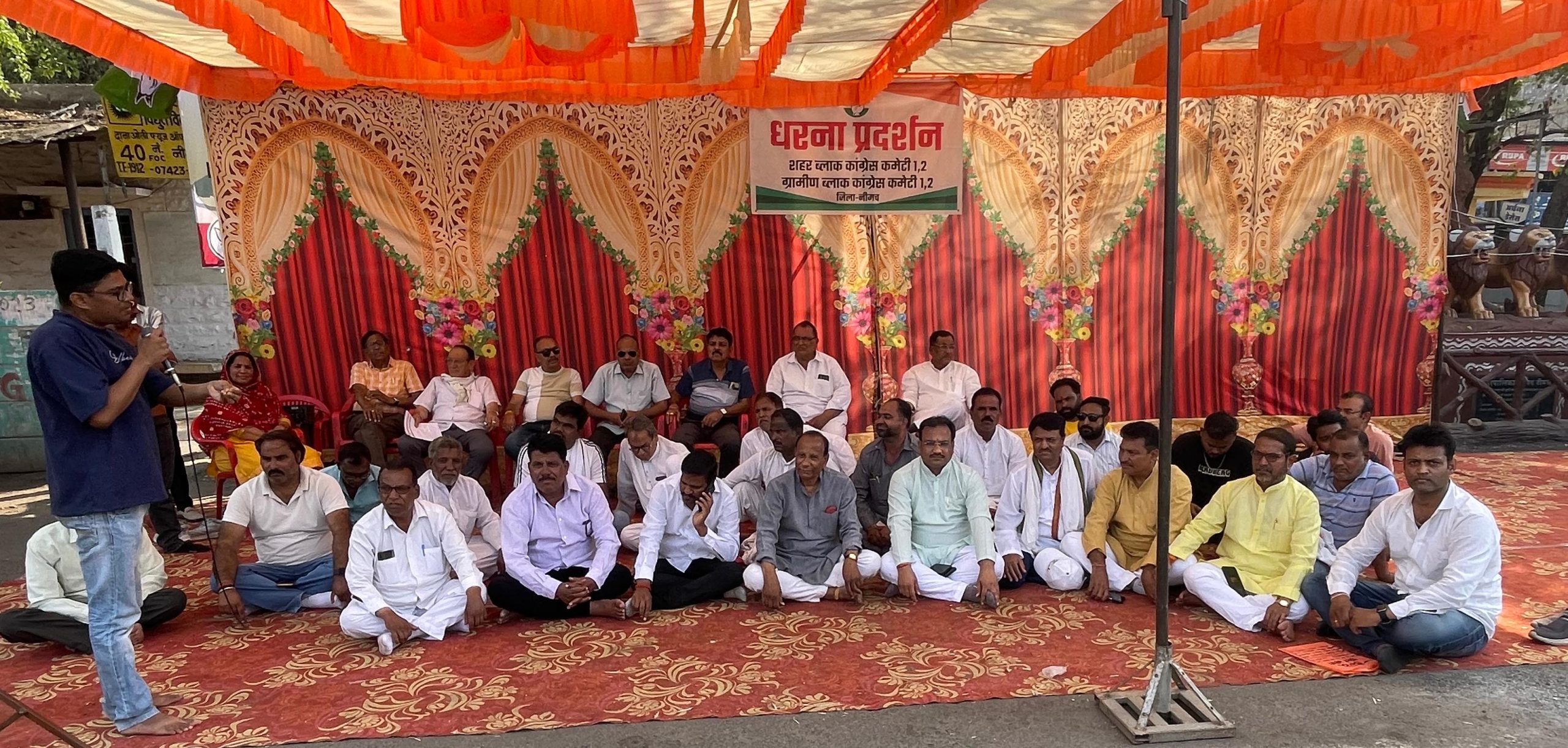 नीमच । शहर ब्लॉक कांग्रेस कमेटी के नेतृत्व में गुरुवार को शहर के फॉर जीरो चौराहे पर केंद्र की मोदी सरकार के विरुद्ध धरना प्रदर्शन किया। यह धरना प्रवर्तन निर्देशालय ईडी पर विपक्षी नेताओं पर दुर्भावनापूर्ण कार्रवाई का आरोप लगाते हुए दिया। करीब एक घंटे से अधिक चले धरने में कांग्रेस नेताओं ने संबोधित किया। उन्होंने केंद्र सरकार व प्रधानमंत्री नरेंद्र मोदी व गृह मंत्री अमित शाह को आड़े हाथों लिया। धरने के बाद कांग्रेसजनों ने राष्ट्रपति द्रौपदी मुर्मू के नाम नायब तहसीलदार जागृति जाट को ज्ञापन सौंपा। ज्ञापन का वाचन जिला पंचायत सदस्य तरुण बाहेती ने किया।ज्ञापन में कहा कि हाल ही में राष्ट्रीय कांग्रेस की पूर्व अध्यक्षा सोनिया गांधी व नेता प्रतिपक्ष राहुल गांधी के विरुद्ध नेशनल हेराल्ड प्रकरण में प्रवर्तन निर्देशालय द्वारा आरोप पत्र दाखिल किया गया। जो दुर्भाग्यपूर्ण हैं। वहीं केंद्र की भाजपा सरकार की राजनीतिक प्रतिशोध की संकीर्ण मानसिकता का प्रतीक है। ज्ञापन में अन्य कई बातों का भी उल्लेख किया गया है। वही इस मामले से जुड़े विषय पर 3 बिंदुओं के आधार पर राष्ट्रपति से उसकी जांच कर उचित कार्रवाई की मांग की गई हैं। वही धरने का संचालन रणजीत सिंह तंवर ने किया। आभार शहर ब्लॉक कांग्रेस अध्यक्ष मोनू लॉक्स ने माना। कांग्रेस जिलाध्यक्ष अध्यक्ष अनिल चौरसिया, शहर ब्लॉक कांग्रेस अध्यक्ष मोनू लोक्स, जिला पंचायत सदस्य तरुण बाहेती, अरविंद चोपड़ा, संगठन मंत्री बृजेश मित्तल, बाबू सलीम, आशा सांभर ,मुकेश कालरा, ओम शर्मा, कमल मित्तल, विमल शर्मा, ओम दीवान, मनोहर अम्ब, बलवंत पाटीदार, इकराम पहलवान, हुसैन कारपेंटर, भगत वर्मा, सेवादल अध्यक्ष गजेंद्र यादव, राकेश सोनकर, हिदायतुल्ला खान, नरेंद्र सोनी, भारत अहीर, मनीष सोनकर, जगदीश पुनर, नितिन हसीजा, दीपक चौधरी, मनोहर चौरसिया, इलियास कुरैशी, जावेद दुर्रानी, यश लोहार, कृपाल मंडलोई, आमीन चांदीजा, शरीफ भाई, संजय पवार, राजेंद्र सिंह तोमर, यश सिंगोलिया, नाहर पहलवान, शमीदा बी आदि मौजूद थे।