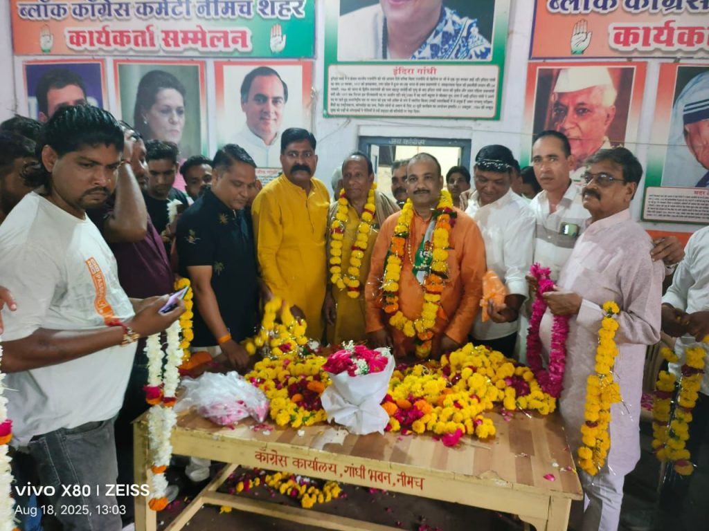 नीमच। कांग्रेस संगठन ने मुझे जिलाध्यक्ष की जिम्मेदारी कार्यकर्ताओं के सुझाव पर ही दी है। इस जिम्मेदारी को हमें साथ मिलकर निभाना है और कांग्रेस संगठन को जिले में मजबूत बनाना है। यह एक बड़ी जिम्मेदारी है।यह बात नवनियुक्त जिलाध्यक्ष तरूण बाहेती ने सोमवार को शहर ब्लॉक कांग्रेस नीमच द्वारा गांधी भवन में आयोजित स्वागत समारोह में बोल रहे थे। उन्होंने कहा कि वरिष्ठ कांग्रेस जनों के आशीर्वाद से युवा लोगों को पार्टी से जोड़ना प्रमुख लक्ष्य है। मेरा उद्देश्य सभी को साथ लेकर चलना है। कांग्रेस के जो वरिष्ठ कार्यकर्ता पार्टी की गतिविधियों से दूर है उन्हें सम्मान पूर्वक पार्टी में सक्रिय करना है। हमें जिले के प्रत्येक बूथ पर ऐसे वरिष्ठ कार्यकर्ताओं से संपर्क साधना होगा।